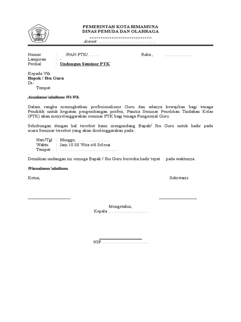 Pada contoh di bawah ini adalah undangan kegiatan . Sesuai dengan program dan jadwal yang telah disusun panitia seminar mgmp matematika smk, kami bermaksud mengadakan kegiatan desiminasi ptk pada:. Contoh surat undangan seminar versi ms. Contoh undangan seminar ptk contoh surat undangan interview bahasa inggris 4 contoh surat . Sitemap · kontak kami · google privacy policy · youtube's terms of . Hak cipta © universitas pendidikan ganesha. Surat undangan p e s e r t a seminar pendidikan nasional__ … Contoh undangan seminar ptk contoh isi undangan. Contoh surat undangan seminar merupakan jenis surat yang digunakan untuk mengundang seseorang untuk ikut atau berpartisipasi dalam kegiatan seminar. Contoh surat undangan seminar yang baik | belajar office undangan seminar.